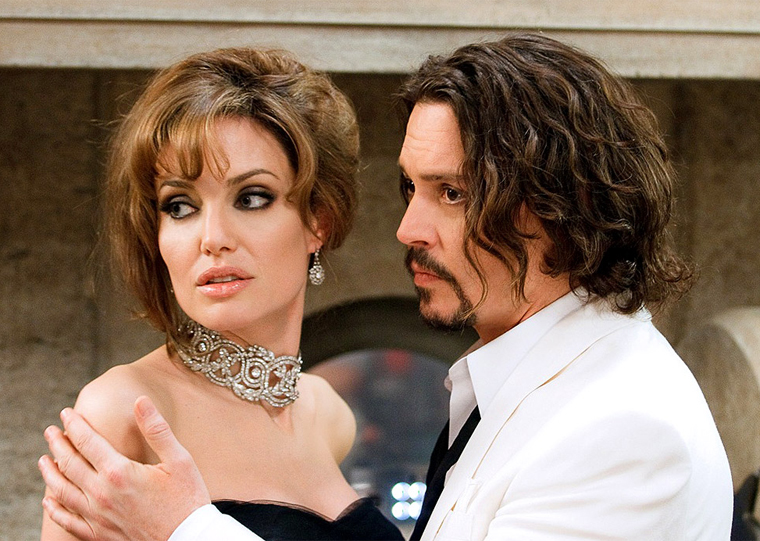 Acredito que os críticos se sentiram ultrajados ao ver o brilhante Johnny Depp apático, sem carisma, sem mistério e subserviente ao personagem de Jolie. Frank (Depp) é apenas um professor americano de matemática que está indo da França para Veneza e encontra Elise. É claro que ele se encanta por ela. E fica estático, apático e tudo que já falei. Ela, por sua vez, está estonteante. Angelina Jolie é bem o tipo de Femme Fatale, e sabe conduzir o bobão Frank muito bem.