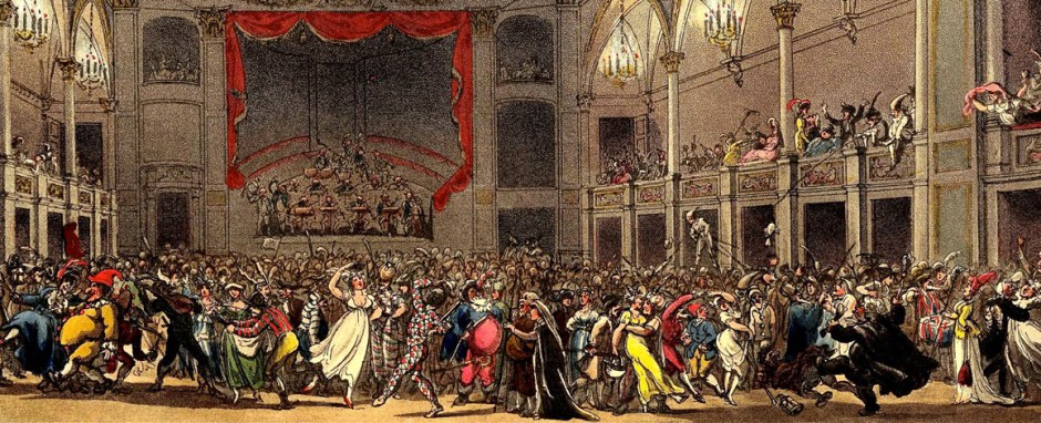 Quando falamos de baile de máscaras, a primeira referência que vem a mente é o Carnaval de Veneza! E possivelmente, os Masquerades Balls realizados na Inglaterra nos séculos 17, 18 e 19 puxam sua inspiração de lá, apesar de não serem realizados no período que antecede a quaresma. Na verdade, é mais provável que eles acontecessem depois da Páscoa, quando tinha início a temporada em Londres, consequentemente, as grandes festas.