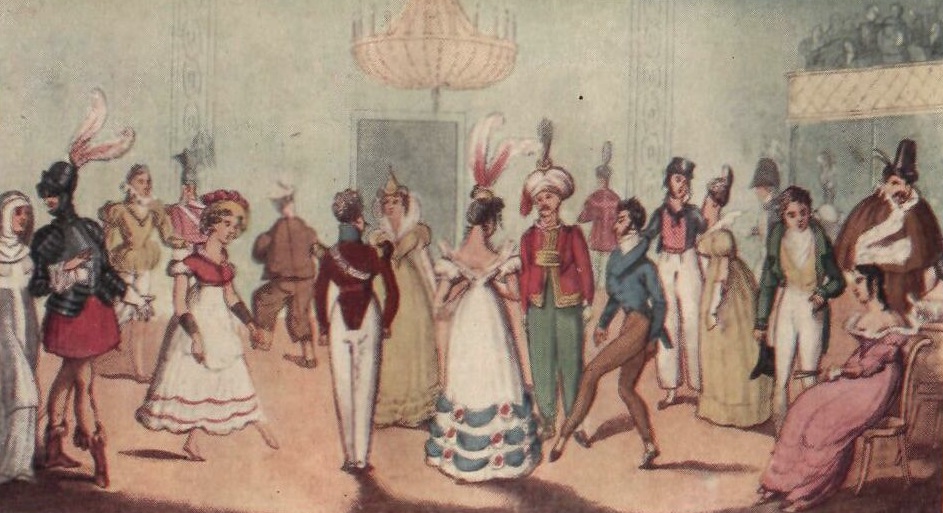 Carnaval chegando aqui no Brasil e todo mundo (ou quase todo mundo) vestindo sua fantasia! A gente sabe, é claro, que na Inglaterra Regencial o Carnaval não era festejado como hoje em dia, com festas na rua e desfiles, etc. Mas, sabemos que a sociedade inglesa adorava uma festa a fantasia, não é mesmo?