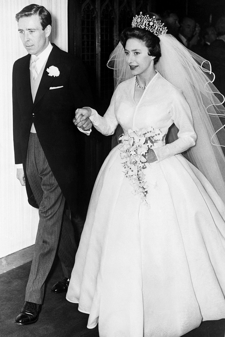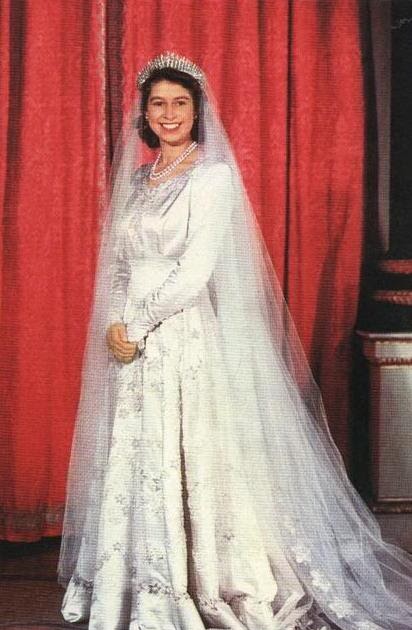 Elizabeth II casou com um vestido lindo, todo rendado (e que foi comprado com cupons de racionamento para tecidos, já que o Reino Unido sofria para se recuperar da Segunda Guerra Mundial). Ele era menos ostensivo, mas tinha materiais nobres, como cetim, e que ressaltavam a produção nacional, seguindo a estética da década de 1950.