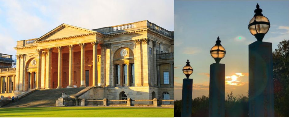 Toda essa formosura é assinada por diversos paisagistas renomados, entre eles os famosos Capability Brown, Robert Adam e Sir John Soane. Dizem que até a Rainha Victoria tinha inveja dos jardins! A própria casa hoje é uma escola, mas é possível fazer visitações pagando a entrada – que inclusive servem para abastecer o fundo que faz as reformas na casa. Por isso, não tenho certeza se as áreas internas de Stowe foram usadas, mas a verdade é que lugar bonito não falta e o salão de baile é incrível!