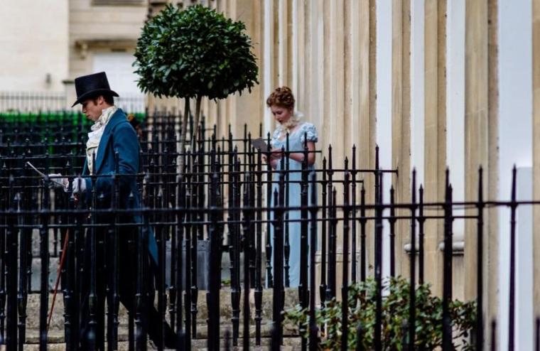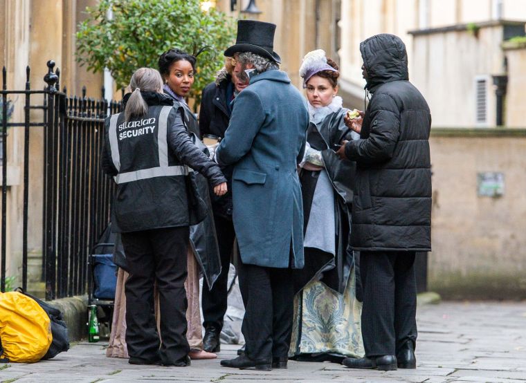 Foi em Bath que tivemos os primeiros vislumbres de muitos personagens caracterizados, como Simon, Lady Danbury, Daphne, Penelope e as Featheringtons, e até Eloise! Com certeza, o fato de gravar nas ruas de uma cidade turística atrapalha guardar tantos segredos.