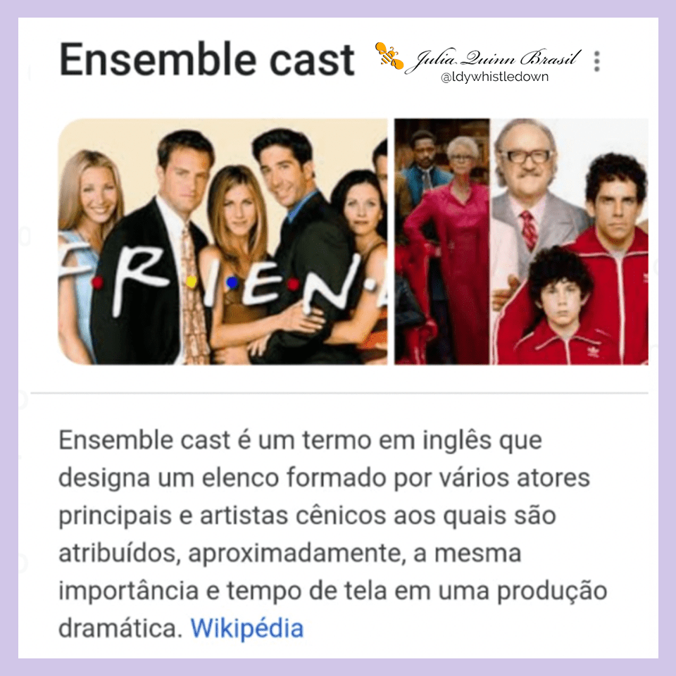 Não é a primeira vez que algum membro do elenco é atacado por estar fazendo seu trabalho e divulgando a série. Então, é válido ressaltar uma curiosidade que talvez muitos não saibam: Bridgerton é uma série de Ensemble Cast. Mas, calma, a gente explica: