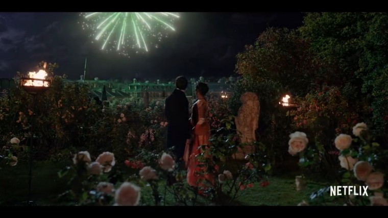 E detalhe para os fogos de artifício no que eu desconfio já ser o casamento de Kathony, porque Bridgerton é “sparkling”, então temos que ter nossa cota de fogos em 1814 também!