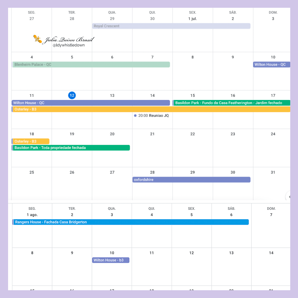 Basildon Park também será fechado entre esta semana e a próxima, e o jornal local já especula se é para Bridgerton. Partimos então em busca de mais informações. E parece que nossas buscas deram fruto, confira o calendário abaixo com o resumo de tudo que encontramos: