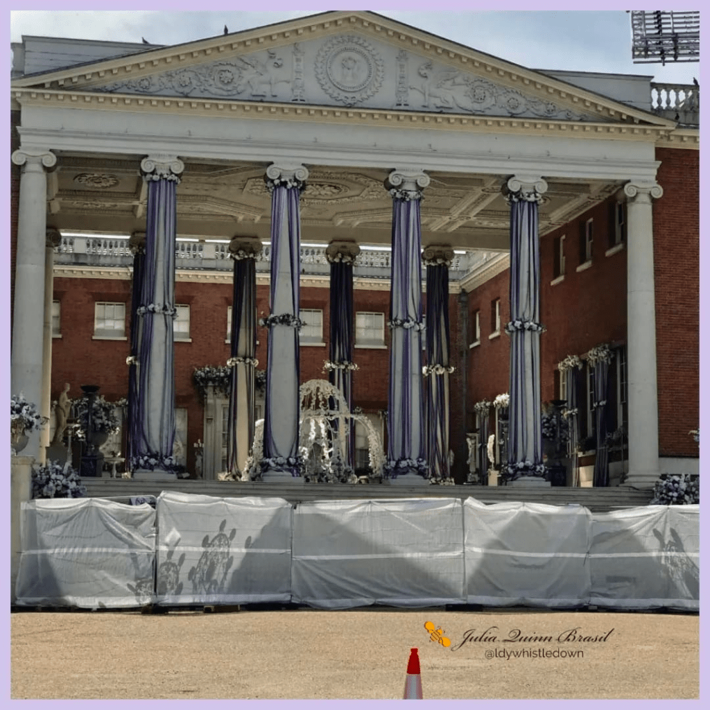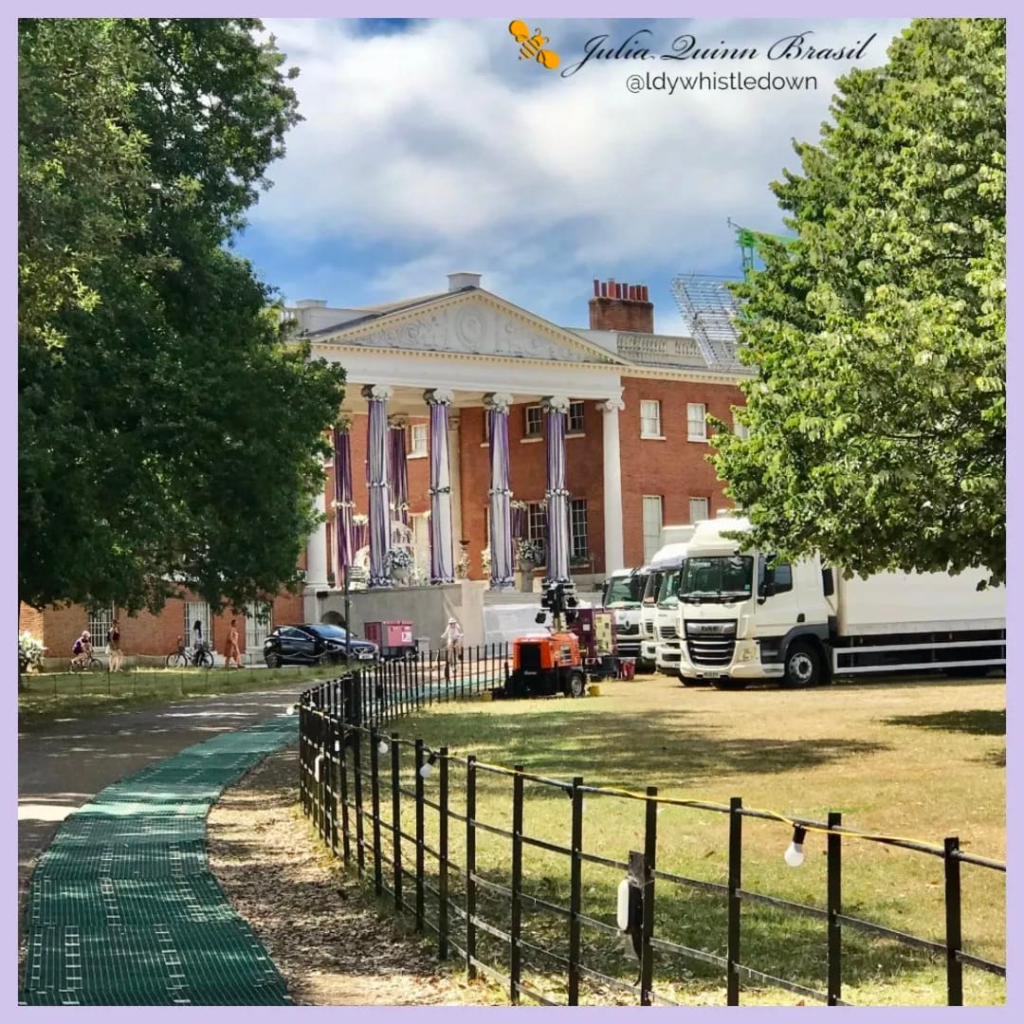 Esta semana, Julia Quinn está no Reino Unido e foi prontamente confirmar que estava indo visitar o set de Queen Charlotte em Wilton House, Salisbury. Enquanto isso, rumores surgiram de que Osterley Park seria utilizado para Bridgerton e que o local já estava sendo preparado para as filmagens. Muitas fotos foram encontradas nas redes sociais e o site da propriedade confirma o fechamento total para filmagens esta semana.